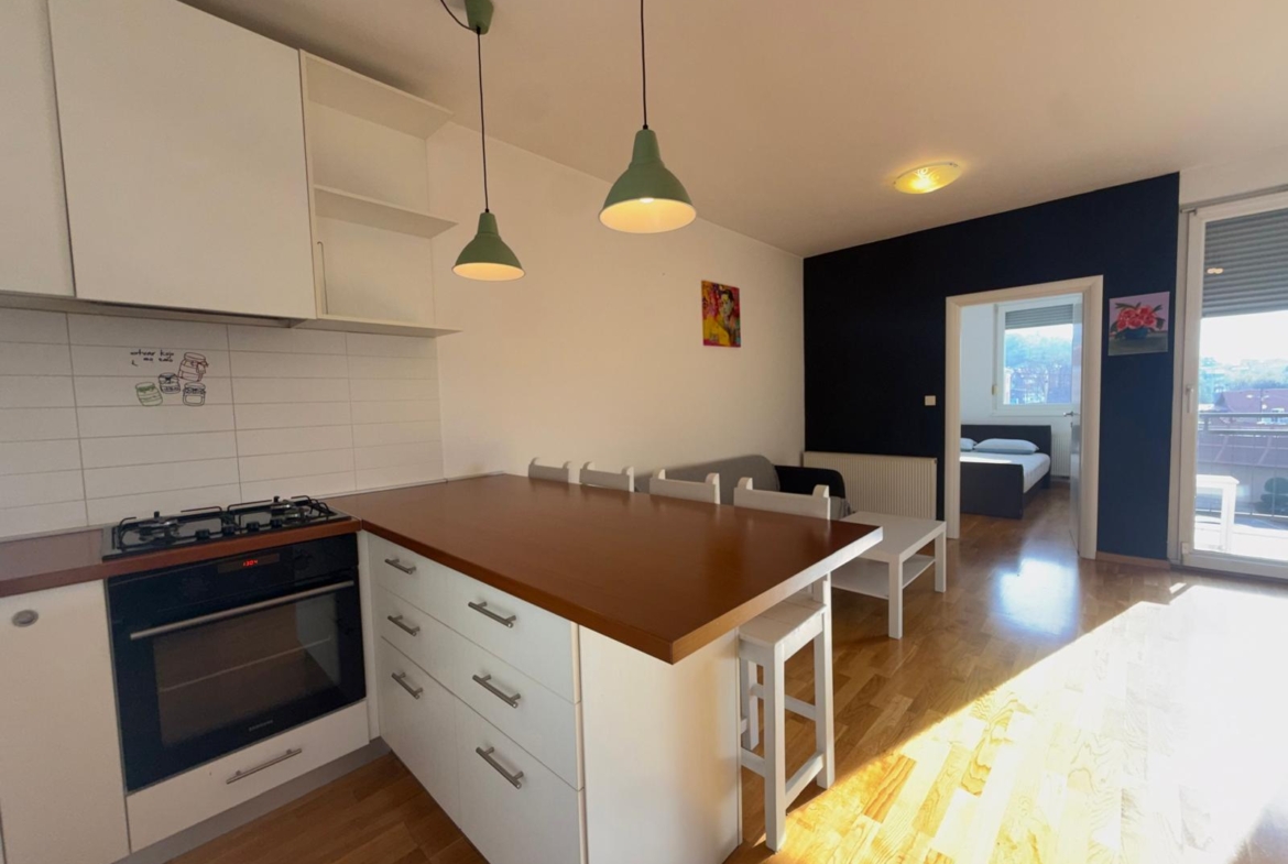 Zagreb, Vrapče – prodaje se dvosoban stan ukupne površine 61,5 m² NKP s garažnim parkirnim mjestom, smješten na 2. katu stambene zgrade na Ilici (k.o. Vrapče Novo). Stan je pozicioniran u sredini kata i orijentiran prema istoku, što osigurava obilje jutarnjeg sunca te ugodnu temperaturu tijekom poslijepodnevnih sati. Sastoji se od dvije spavaće sobe, dnevnog boravka s kuhinjom i blagovaonicom, kupaonice s kadom te balkona. U cijenu je uključeno i garažno parkirno mjesto na -2 etaži, koje je već pripremljeno za zatvaranje u garažu (potrebna je ugradnja vrata). Zgrada je izgrađena 2012. godine od strane renomiranog izvođača Kamgrad, poznatog po kvalitetnoj gradnji te izvrsnoj toplinskoj i zvučnoj izolaciji. Cijena: 245.000 € – 4000 EUR/m2.